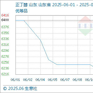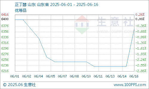 根据生意社商品行情分析系统显示,截止2025年6月16日,国内山东地区正丁醇参考价格6366元/吨,与6月12日(正丁醇参考价格6233元/吨)相比,价格上调133元/吨,涨幅2.14%。