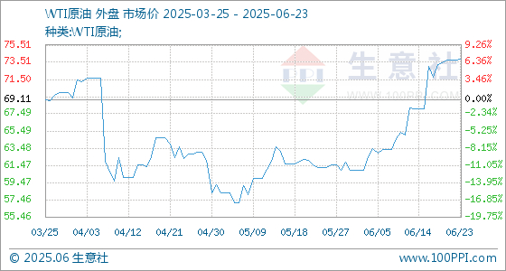 6月23日生意社WTI原油基准价为73.80美元/桶