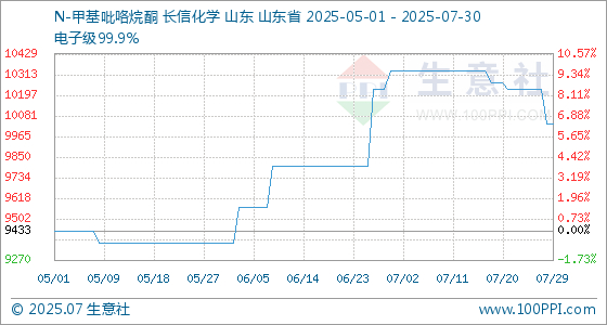 7月30日生意社N-甲基吡咯烷酮基准价为10033.33元/吨