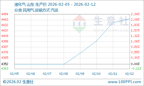 本周(2月5日-2月12日),国内液化气现货市场呈现“先抑后扬”走势,整体价格重心小幅上移。截止2月12日,生意社液化气基准价为4437.50元/吨,与本月初(4412.50元/吨)相比,上涨了0.57%。