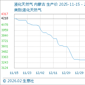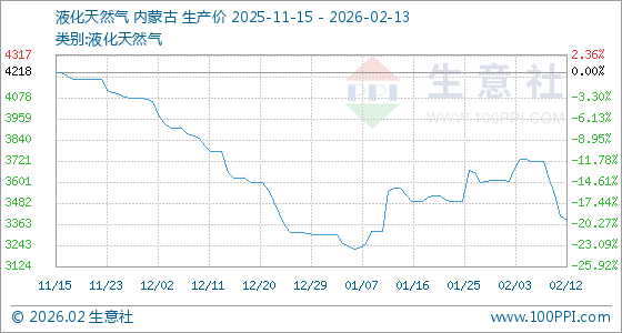 2月13日生意社液化天然气基准价为3382.00元/吨