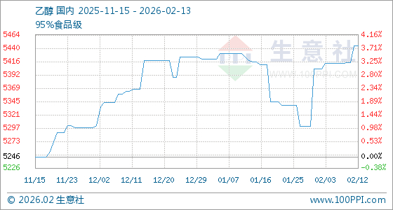 2月13日生意社乙醇基准价为5444.45元/吨