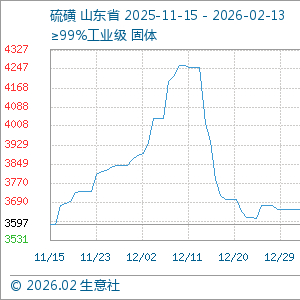 2月13日生意社硫磺基准价为3833.33元/吨