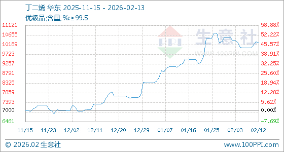 2月13日生意社丁二烯基准价为10266.67元/吨