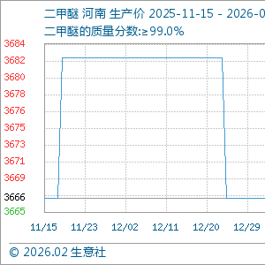 2月13日,生意社二甲醚基准价为3683.33元/吨,与本月初持平。