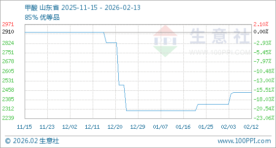 2月13日生意社甲酸基准价为2440.00元/吨