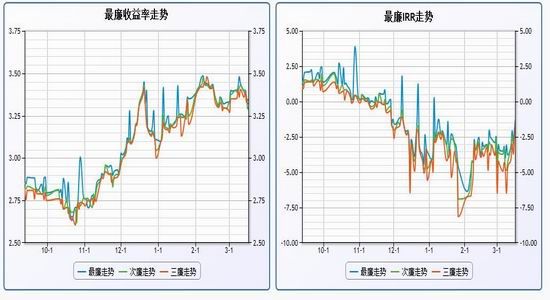 最廉收益率本月处于高位震荡状态。从最廉IRR来看,2月初IRR达到了-7.5%左右,本月底回升至-1%。目前来看国债期现套利区间仍未打开,短期来看最廉IRR很难回到去年底2.5%左右的正套利区间。从10年期国债期货主力合约T1706与最廉券的基差来看,本月价差由2逐步过度到1左右,正基差收敛,但仍未到可以做负基差套利阶段。未来一段时间,基差大概率仍未正。