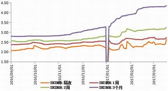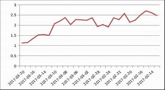 银行间回购利率本月大幅上升。Shibor利率也出现大幅上涨。由于MPA考核在即,且年后央行基本在净回笼资金。资金压力会进一步加大。由于每年一季度是央行国债发行的低谷,所以央行在公开市场操作净回笼资金不会对国债的供求关系造成很大影响。预计在二季度,随之央行国债发行量的加大,央行公开市场操作会逐步回归常态。