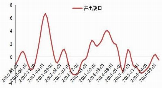 中国月度产出缺口自去年一月份大幅反弹,并且在去年底一度由负缺口变为正缺口。在产出缺口自16年1月份触底后,带动大宗商品一路上涨至今。目前从产出缺口来看,中国经济已经由触底反弹向正缺口转换。但短期内,在产出缺口在连续回升了12个月后有回调的需求,利多债券。