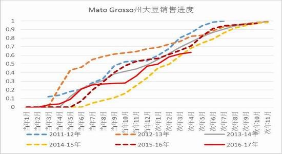 图14:巴西马托格罗索州大豆销售进度(单位:%)