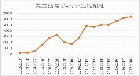 图16:美豆油需求-用于生物柴油原料(单位:百万磅)