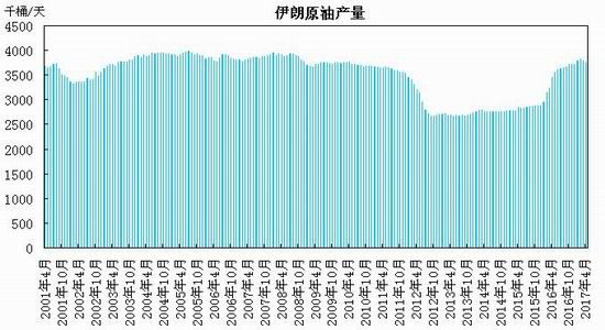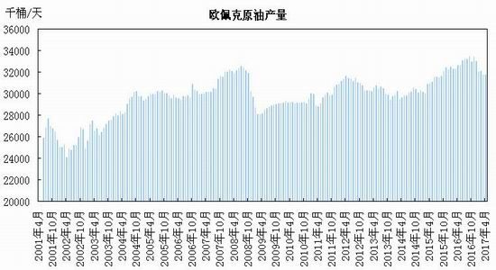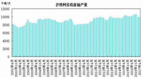 供应方面,欧佩克4月份《石油市场月度报告》援引二手资料数据显示,4月份欧佩克13个成员国原油日产量3173.2万桶,比2017年3月份原油日产量减少1.8万桶,其中沙特阿拉伯原油日产量995.4万桶,比修正过的3月份日产量数据增加4.9万桶;伊拉克原油日产量437.3万桶,比3月份日产量数据减少3.9万桶;尼日利亚原油日产量150.8万桶,比修正过的3月份原油日产量增加5.1万桶;伊朗原油日产量375.9万桶,比3月份日产量减少3.4万桶。