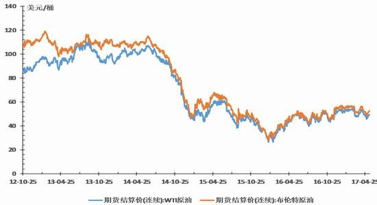 进入5月份,欧美原油期货价格先抑后扬。4月底,利比亚两处油田重新启动,加之美国原油产量增长,抵消了欧佩克主导的减产效果,中国和美国制造业增长幅度逊于预期,重压对石油需求增长的预期,欧美原油期货下跌。WTI原油期货价格一度跌破44美元/桶,创下近五个月来的新低。随着美国发布的就业数据乐观,沙特阿拉伯石油部长法利赫称会把减产协议延长至今年下半年甚至更久之后,马克龙当选法国总统有望稳定欧洲经济,国际油价开始反弹。之后,越来越多的国家表示愿意延长减产协议,如阿尔及利亚、伊拉克和科威特等。此外,非欧佩克国家也表示支持加入延长减产,如赤道几内亚和土耳其等。最近俄罗斯还和沙特阿拉伯在北京达成的联合声明,说双方同意延长现有的减产协议到明年3月份。双方都承诺尽一切可能将全球库存降低到5年平均水平。美国原油库存的下降也利好原油价格。美国炼油厂开工率上升,原油库存连续第六周下降,截止5月12日当周,美国原油库存量5.20772亿桶,比前一周下降175万桶,比4月底下降了700万桶。WTI目前又重回50美元/桶上方。