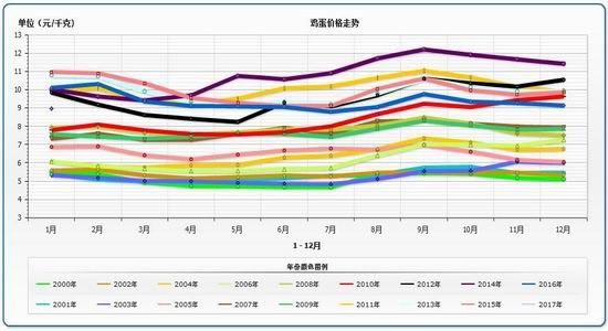 图12:鸡蛋价格走势季节性规律明显——供应淡季、需求旺季的6-9月份往往呈上涨态势。