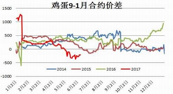 简评:从价差走势来看,跨期品种来看,流动性来看,目前主要考虑9-1合约价差走势,9月与1月期价小幅贴水,熊市之中,1月淡季价格一般要低于9月价格,这从2014-2016年度两者价差表现可见一斑,但目前市场存在回升或者阶段回升预期,所以1月合约高于9月合约,相同背景下的2013、15年的同期市场表现亦如此,当年1月合约普遍高于9月合约100-150元/千斤,目前9-1合约价差在-230元/千斤,继续缩减缺乏事实及心理支撑,后续存在止跌回升预期,时间节奏上可能7月份之后可能更大,因为此时市场阶段上涨完成后,市场对远月期待会灰飞烟灭。不管时间节奏如何,投资者后续可以考虑逢低便进行做多9-1月价差的操作。