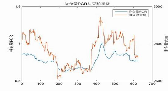 当市场走势偏弱,预期很可能进一步下跌时,投资者往往大量买入看跌期权,这就会导致PCR比率偏高,当高过一定阈值时,标的价格很有可能触底反弹;而当市场逐步走强时,投资者则会大量涌入多头,使得PCR比率偏低,当低于某一阈值时,市场则可能在触顶后产生回调。故而在PCR的实际运用过程中,确定合理的值域尤为重要。下文将以豆粕期权及其标的期货为例,研究PCR指标的实际运用。