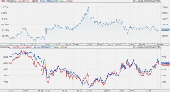 图28:LLDPE1801合约与PP1801合约历史价差趋势图