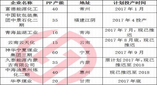 表1:国内PE企业新增产能统计表(单位:万吨/年)