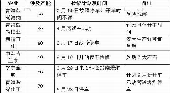 表5:国内PVC装置检修情况统计(单位:万吨/年)