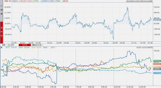 图24:PVC1801合约与PVC1805合约历史价差趋势图