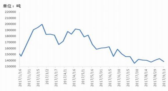 8月份,虽然国内PVC检修企业不多。但是影响PVC企业开工的因素较多,环保及安全检修。同时内蒙地区70周年,天津地区全运会,均不同程度中抑制当地PVC企业开工。截止目前,8月份国内PVC企业平均开工率在72.67%,较7月份有所下降。9月份仍有部分企业有检修计划,且后期受十九大影响,PVC企业开工难有提高,供应继续维持紧张格局。