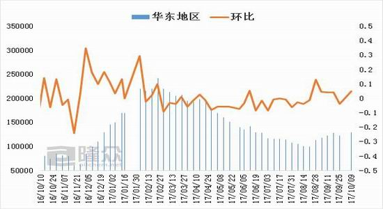 从隆众PVC社会库存指数显示,南方市场库存较节前上升明显,其主要原因是国庆假期间西北货源陆续到货,但是受国庆长假影响,贸易商多数休假,暂未销售。截止目前南方整体社会库存量总计约在17.8万吨左右。华东库存在12.9万吨左右,较节前环比增加4.9%。华南地区库存指数在4.8万吨左右,整体增幅不多,后期在需求带动下库存有望下降。