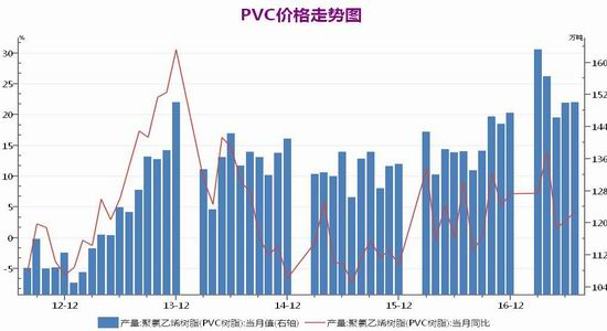 2017年仍是产能扩张期,据卓创统计,计划在2017年投产的企业产能约152万吨,另外有166万吨不确定时间。盐湖海纳镁业有限公司PVC三期工程30万吨天然气制乙烯法项目计划7月开车;宁夏金昱元PVC装置二期20万吨新厂6月份投产成功。吉兰泰1期糊树脂8万吨,7月25日先开一条4万吨的线试车。其它装置投产时间尚不确定。