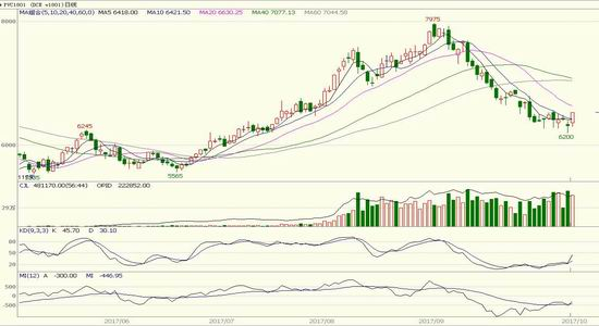 (1)PVC1801下方测试6200-6400附近支撑,上方测试第一压力位6700,第二压力位7000,建议在6200-6400区间逢低做多。
