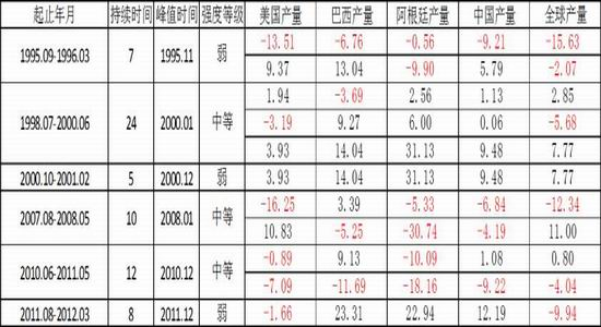 拉尼娜从历史统计情况来看,在1995-2012年间发生的6次拉尼娜气候中,持续期长短不定,长的长达24个月,短的仅持续了5个月,而且随着近年来全球气温的上升,拉尼娜气候持续的时间有缩短的趋势,且拉尼娜气候即使出现,如果不是出现在产区,影响不会太大,但若出现在产区,或将影响南美大豆的播种进度,将对产量带来影响。