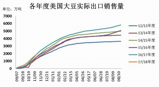 据美国农业部公布的数据显示,截至2017年11月16日,2017/18年度美国大豆实际装船量为1888.81万吨,占预估总值6124万吨的27.7%,去年同期为27.13%,之前两周的占比比去年同期高出近2个百分点,这意味着装船的步伐较前期有所放缓。同时总销售量为3345.2万吨,实现预估值的55%,比去年同期减少10个百分点,维持之前两周的差异水平,显示出口时间窗口开启至今,美豆出口情况没有改善,缺乏亮点表现,不足以提振期价趋势性上涨,如果后市这种情况没有得到改善,那么未来美国农业部有下调出口预估的可能,形成新的压制美盘价格的因素,制约远月期价走势。