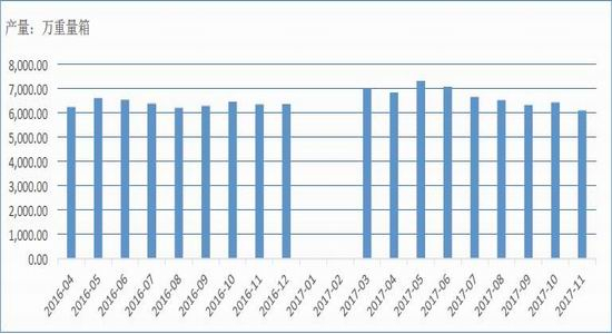 目前全国共有浮法玻璃12.91亿重量箱,虽然2017年1-11月国内玻璃总产量累计同比还有3.9%,但经历今年11月以来的大幅减产后,后期同比数据有望转正为负。据统计,当前国内浮法玻璃生产线共计361条,其中在产228条,产能利用率只有63%,而在产生产线中有10条2010年之前点火的,具有潜在检修需求,即便后期有一些复产计划的生产线,在新增产能有限、环保政策压制的背景下,玻璃总产能增加概率有限。