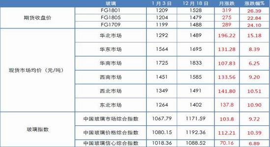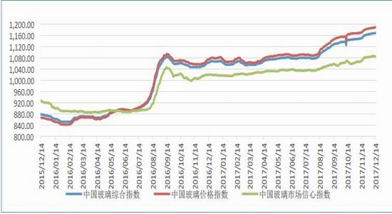 2017年中国玻璃指数整体上扬。其中“中国玻璃综合指数”年末较年初上涨103.8点,上涨幅度为9.72%;“中国玻璃价格指数”年末较年初上涨112.21点,上涨幅度为10.39%;“中国玻璃市场信心指数”年末较年初上涨70.16点,上涨幅度为6.89%.