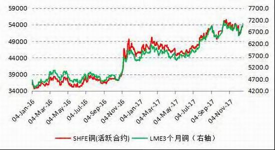 从2017年铜市场主要矛盾来看,一季度来源于矿山罢工带来的全球铜矿产出的下滑,而需求在地产投资和基建投资扶持下保持坚挺。二季度市场关注中国经济潜在下行风险,到了三季度经济超预期韧性下,铜价再度探底回升,并叠加废铜进口政策(废七类禁止进口),冶炼前三季度检修导致供应不及预期,铜价在需求并不强劲的情况下不断抬升。