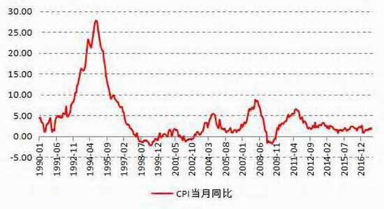 作为全球第二大经济体,中国2016-2017年物价也大多数时间保持低位,截止2017年11月CPI同比增速仅为1.7%,近两年只有2016年2-5月、10月至2017年1月同比增速超过2%。而11月核心CPI同比增速为2.3%,相对来讲,核心通胀在逐步攀升,但并非是原材料驱动,主要是中国消费升级背景下教育、旅游、医疗、娱乐这些都是属于服务性行业价格在抬升,反映是物价结构性变化。
