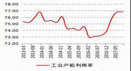 从规模以上工业企业利润和产能利用率来看,2017年中国工业企业部门已经走过了产能过剩的阶段,产能出清完成,甚至部分品种还出现结构性产能不足。数据显示,截止2017年1-10月,规模以上工业企业利润累计同比增长23.3%,这是2017年2月以来连续10个月保持20%以上的增速。理论上,企业主营业务利润增长,产能就就不是过剩的。衡量产能过剩与否的另外一个指标——产能利用率也在回升,截止2017年9月升至76.8%,为四年来最高水平,在2016年一季度一度跌至72.9%。
