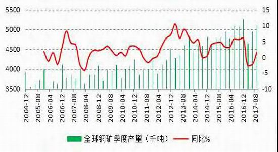 1、2017年全球铜矿产出小幅受影响