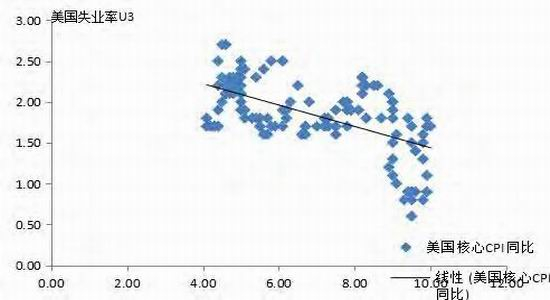 图11:美国失业率U3和核心CPI长期来看没有出现负相关