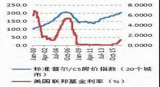 图8:联邦基金利率和美国股市、楼市对比
