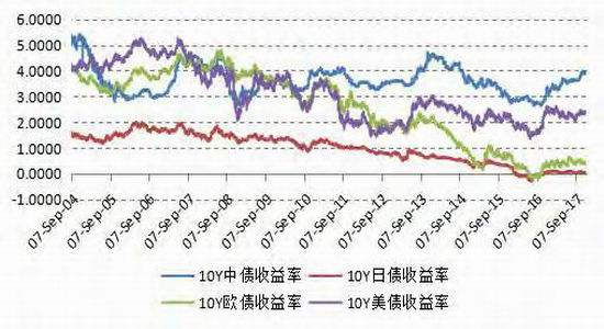 图3:10年期美债、日债、欧债和中债收益率