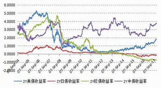 图2:2年期美债、日债、欧债和中债收益率