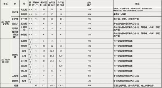 ●三门峡灵宝市地区受灾原因:此地区前期是纯粹的冻害,正好是盛花期,突然袭来极其猛烈的霜冻。高山果园还遭受了一定的大风天气影响。后期平原地区落叶病非常严重。