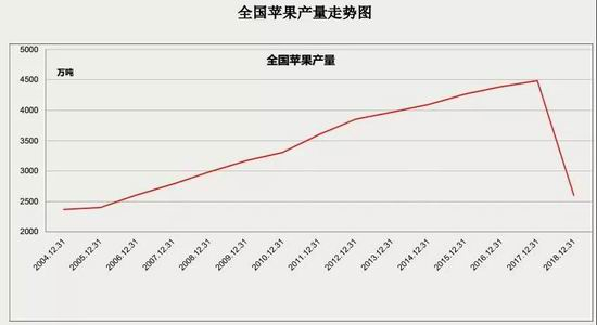 上图是国内苹果产量走势图,2018年产量为预测值,产量下降至2006年的水平,下降幅度十分惊人!