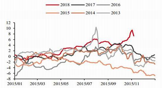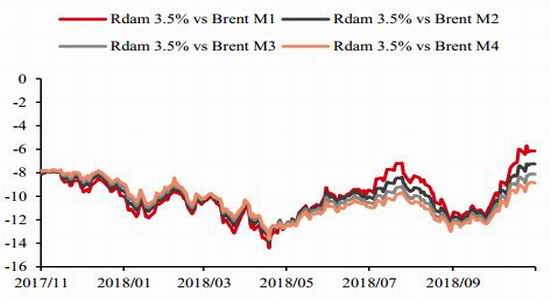 图13:Rdam3.5%掉期月间价差 单位:美元/吨