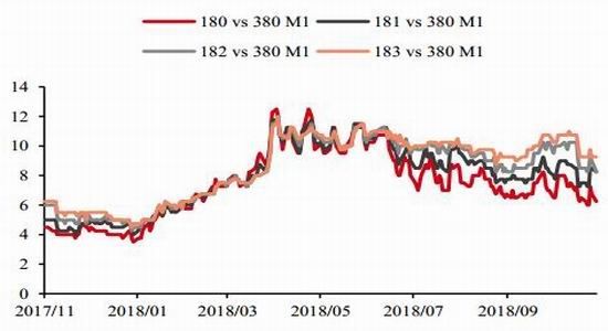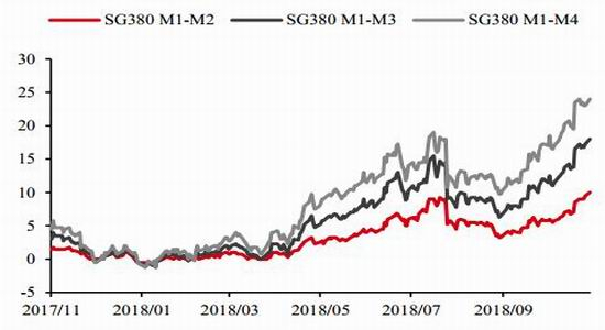 当前,燃料油供应紧张的局面仍未得到缓解,新加坡市场与西北欧燃料油市场均保持相对稳固。国内市场方面,上期所燃料油期货克服原油端阻力继续维持强劲涨势,当前燃料油主力合约FU1901与新加坡380cst12月Swap的内外盘价差扩大到了50美元/吨左右的水平;与此同时,FU1901-FU1905的跨期价差来到211元/吨,相对地新加坡380cstSwap1812-1904的跨期价差约为29.25美元/吨,经汇率换算后内盘月差大约比新加坡纸货月差高9元/吨。