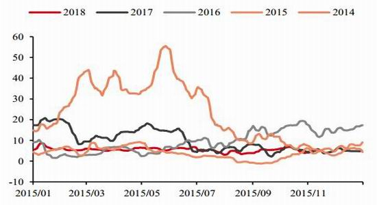 图14:Rdam3.5%掉期月间价差 单位:美元/吨