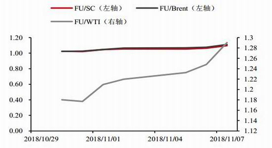 3.普氏亚洲燃料油市场分析:当地时间周一,新加坡高硫燃料油市场继续走强。380cst(11月/12月)月差在周一下午三点来到13.25美元/吨,相较周五的12.4美元/吨继续攀升。据一名位于新加坡的贸易商透露,供应紧张的局面还会持续。11月中旬开始套利船货的流入量会有所增加,贸易商预计供应会在12月份有所缓和,但幅度相对有限。此外,在新加坡价格高地的吸引下,10月份出发前往新加坡的船货量有所增加,380cst东西价差持续走阔,在上周五来到36.4美元/吨,这是自15年5月29日以来的最高水平。据投标新闻,台湾Formosa挂牌出售4万吨380cst高硫燃料油(硫含量3.5%),装船日期为11月18日至20日,地点在Mailiao;沙特阿美挂牌出售8万吨700cst高硫燃料油(硫含量4%),装船日期为11月19日至21日,地点在Yanbu。