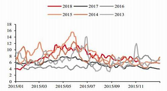图8:Rdam3.5%对Brent裂差 单位:美元/桶
