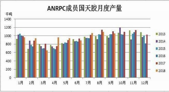从产量看,据ANRPC公布的数据,2018年前三个季度,全球天然橡胶产量同比增长0.4%至855.5万吨,产量增速明显放缓。排除一季度受到ITRC联合限制出口政策对1—4月份的产量影响外,之后受胶价持续低迷的影响,天胶生产的积极性受到一定打压,同时受强降雨、洪水和台风等不利天气影响割胶天数减少。从6月份开始,产量累计增速开始持续下滑,增速相对2017年大幅缩窄。不过,即便如此,2018年前三个季度的天胶产量依然能取得小幅增长,可见目前天胶的产能依然较为充裕。ANRPC预计2018年全球天胶产量为1385.1万吨,相比2017年的1335万吨仍有3.7%的增速空间。虽然11月份以后国内产区逐步进入停割期,但却是东南亚等主产国天胶的生产旺季,尤其前期雨季降水较多,进入旺产季后产量将大量释放,在物候条件无特殊变化的情况下,12月-次年1月天然橡胶的产量将十分可观,旺产季的到来将给供给端带来新的压力。