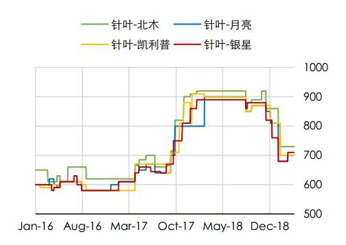 图012 PartA:本色-针叶(进口)季节性折线图(元/吨)