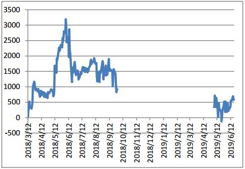 二季度郑棉仓单量开始陆续减少。一方面季节性因素导致,另一方面郑棉价格5月份大跌,许多基差交易的企业报价相对较低,纺织企业点价也相对积极一些,仓单逐渐流出期货市场。郑棉的仓单量持续减少,截止6月20日郑棉仓单16800张,有效预报仓单1216张,合计折棉花72万吨左右。三季度预计仓单将继续流出,随着9-1价差逐渐拉大,预计也将有一部分仓单进入2001合约。